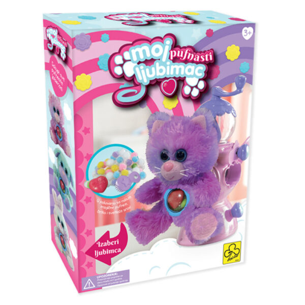 U kutiji Moj Pufnasti ljubimac – Fabrika je uključeno: plišani mededić, pufnice, mašina za punjenje, sertifikat o rodjenju, kartice sa karakteristikama.